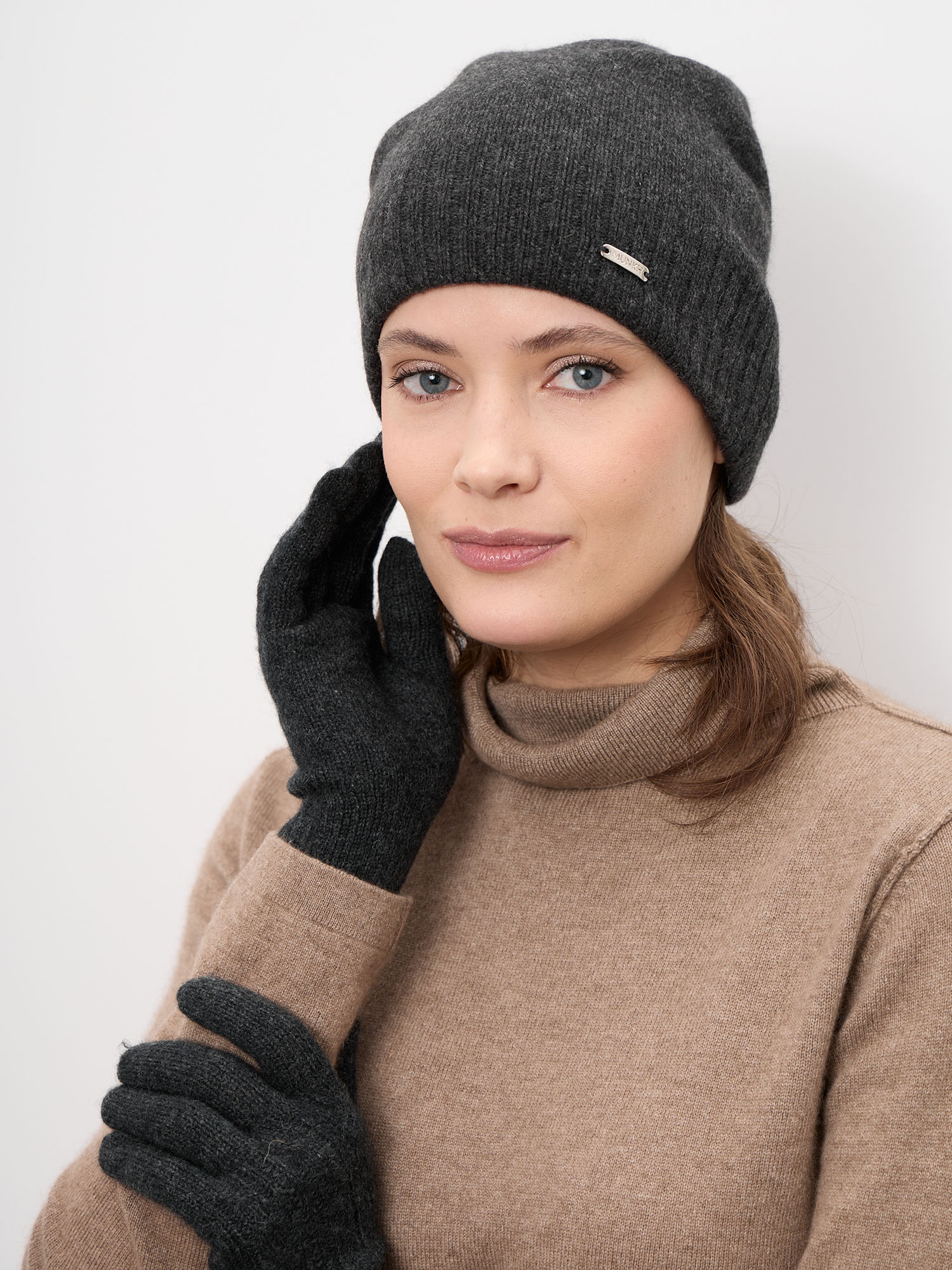 Лаконичная шапка из натурального кашемира в универсальном графитовом оттенке — идеальный аксессуар для холодного сезона. Сдержанный дизайн и благородный цвет делают модель базовой и легко сочетаемой с верхней одеждой любого стиля — от классики до casual. Шапка подчёркивает аккуратный образ и добавляет ощущение утончённого комфорта.