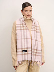 Классическая прямоугольная форма с аккуратной бахромой по краям. Элегантный клетчатый узор придаёт шарфу выразительность и делает его универсальным аксессуаром для различных образов.