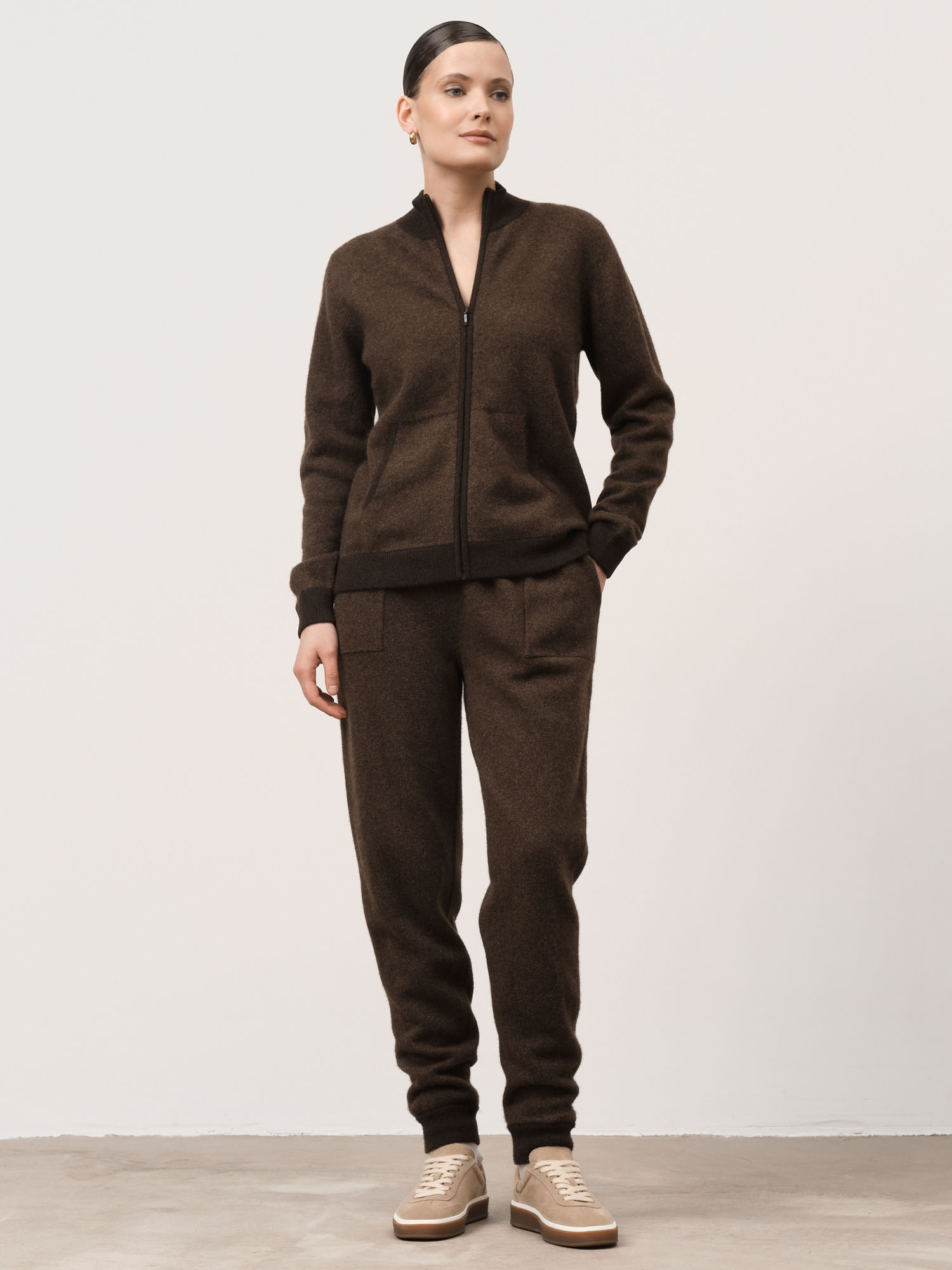 Коричневый — глубокий натуральный оттенок, который подчёркивает текстуру материала и легко сочетается с базовой цветовой гаммой гардероба.