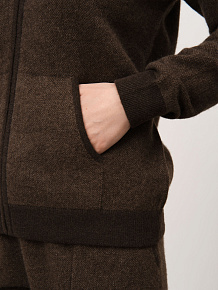 Фронтальная застёжка на молнии, аккуратные манжеты и эластичная резинка по нижнему краю. Плотная вязка помогает изделию сохранять форму и обеспечивает дополнительный комфорт.