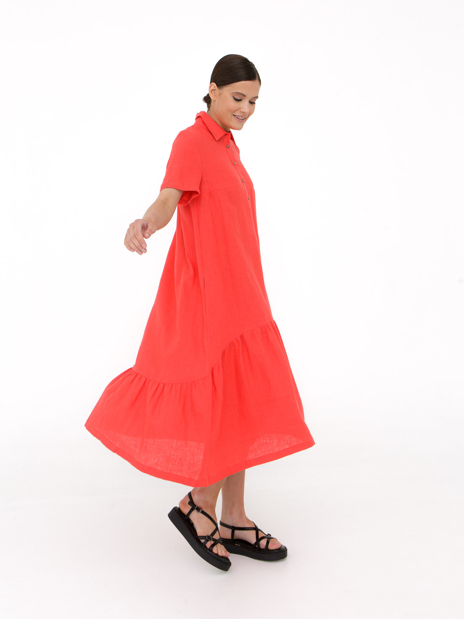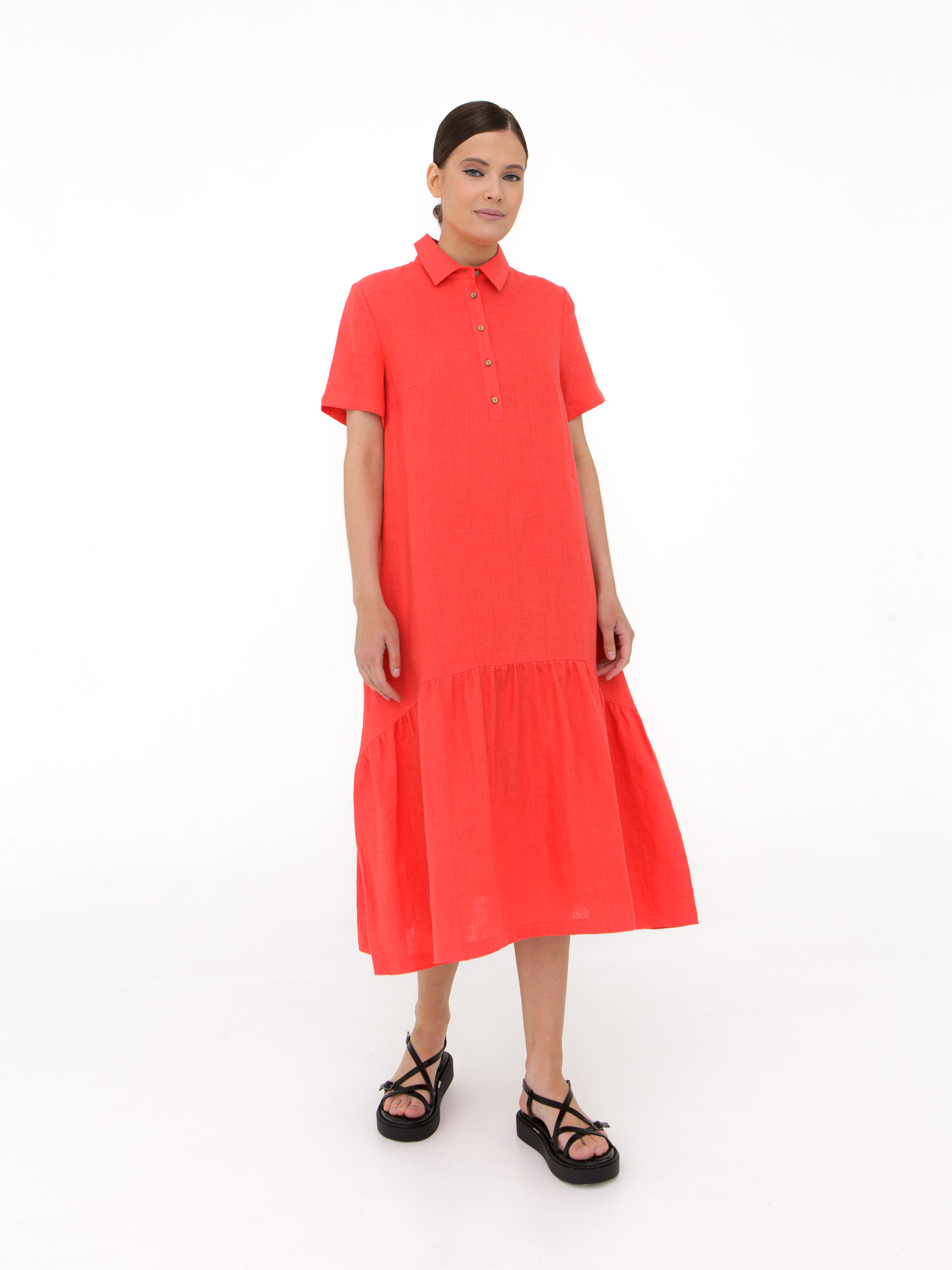 Женское льняное платье в коралловом оттенке — яркое и женственное решение для летнего гардероба. Легкий натуральный материал дарит ощущение прохлады и комфорта даже в жаркую погоду, а свободный силуэт создает непринужденный и стильный образ. Платье идеально подойдет для прогулок, отдыха и повседневной носки, добавляя образу свежести и выразительности.