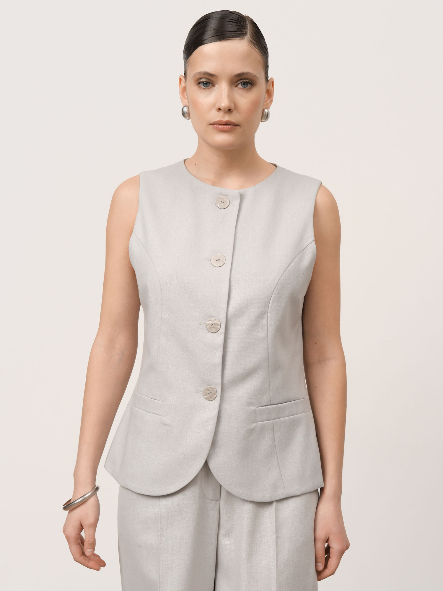 Отличный жилет для летнего сезона! Лён – идеальная ткань для жары, в нём комфортно даже в +30. |