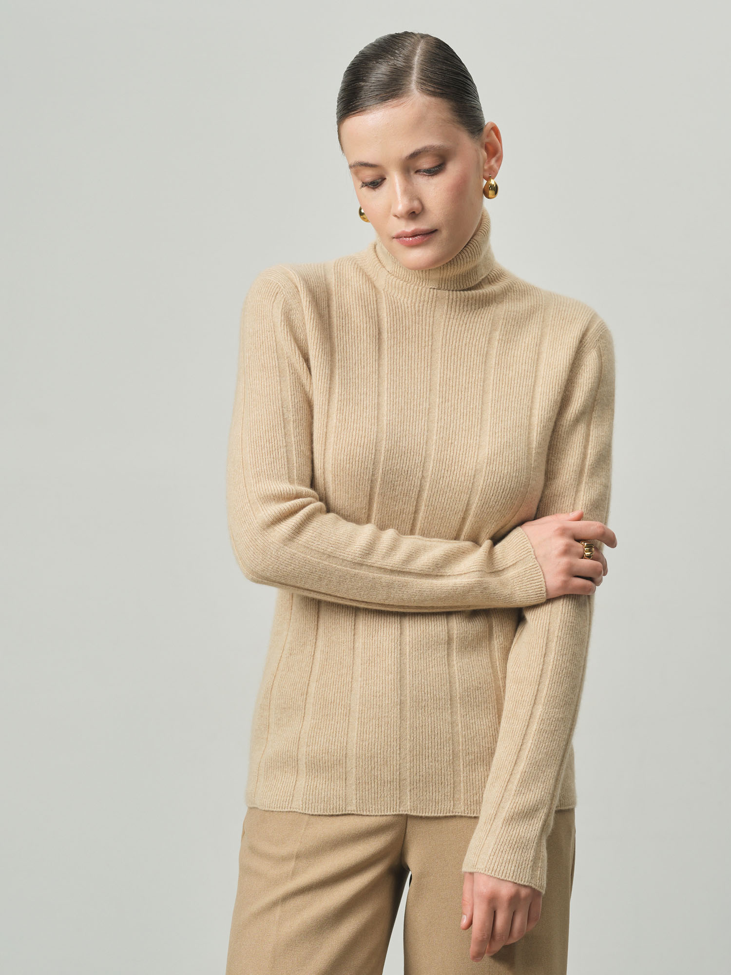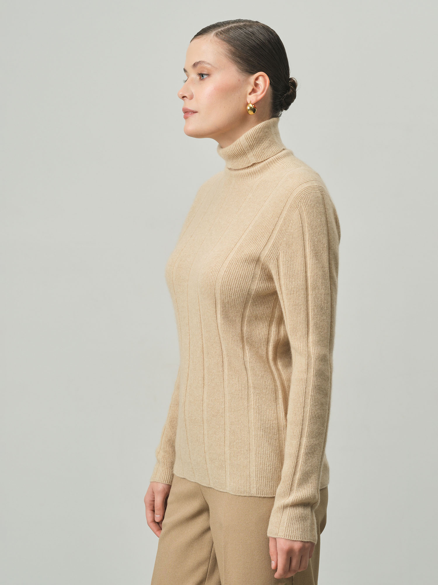 Водолазка женская из кашемира KW051693-D бежевая